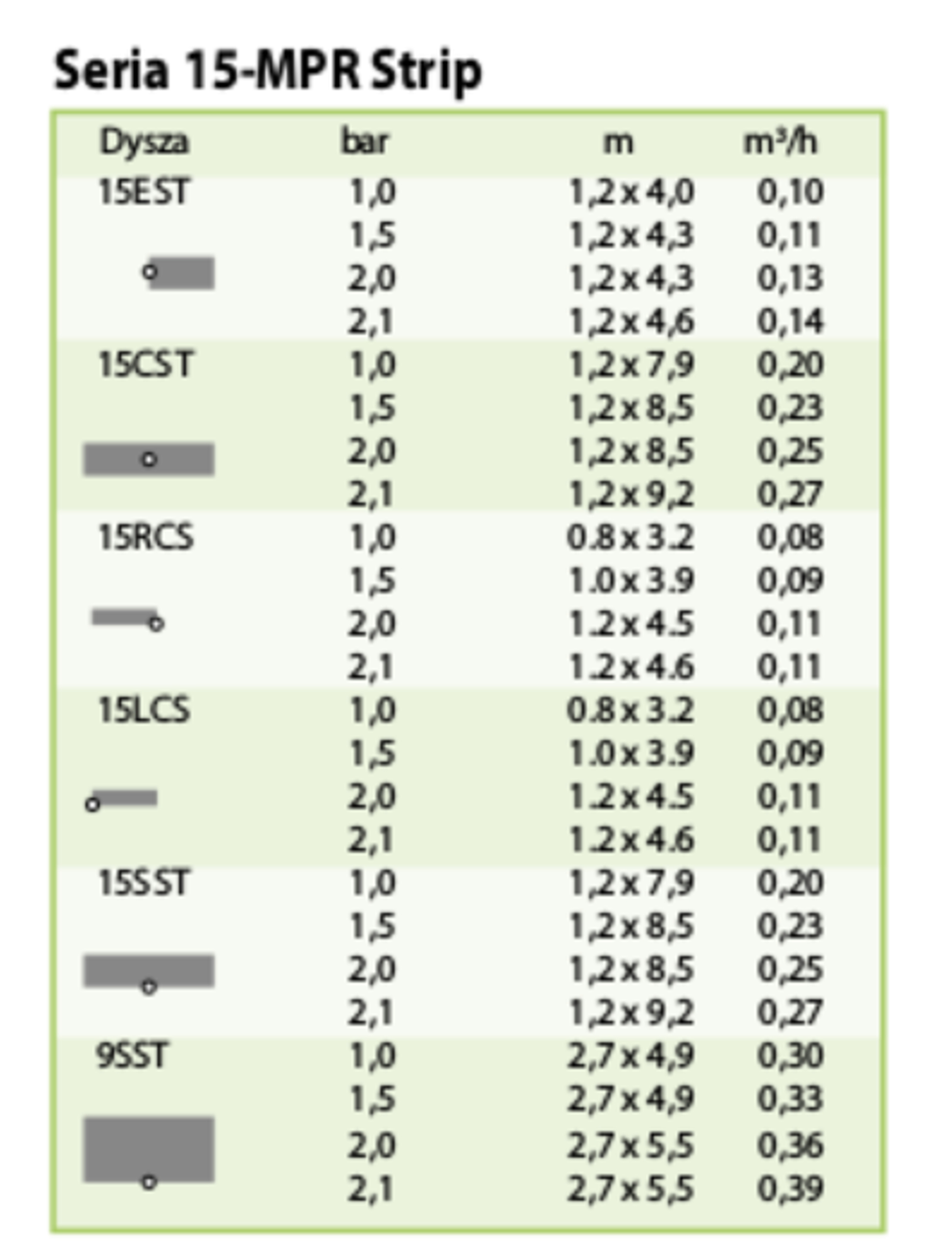 - zalecane ciśnienie wody: 1,0-2,1bar