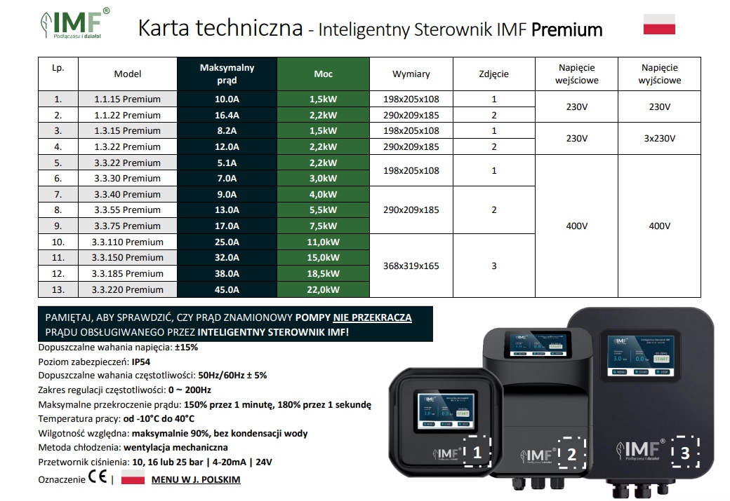 IMF PREMIUM to seria inteligentnych sterowników, umożliwiających energooszczędne i komfortowe zarządzanie pracą pomp w instalacjach domowych i nawadniających. Programujesz żądane ciśnienie i zawsze masz je w instalacji na tym samym poziomie, niezależnie od pobieranej chwilowo wydajności!