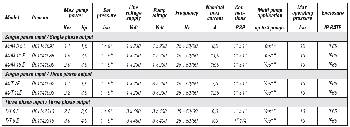 Sterowniki można łączyć w grupy i zarządzać zestawem maksymalnie 3-pompowym. W zależności od modelu urządzenie obsługuje silniki: