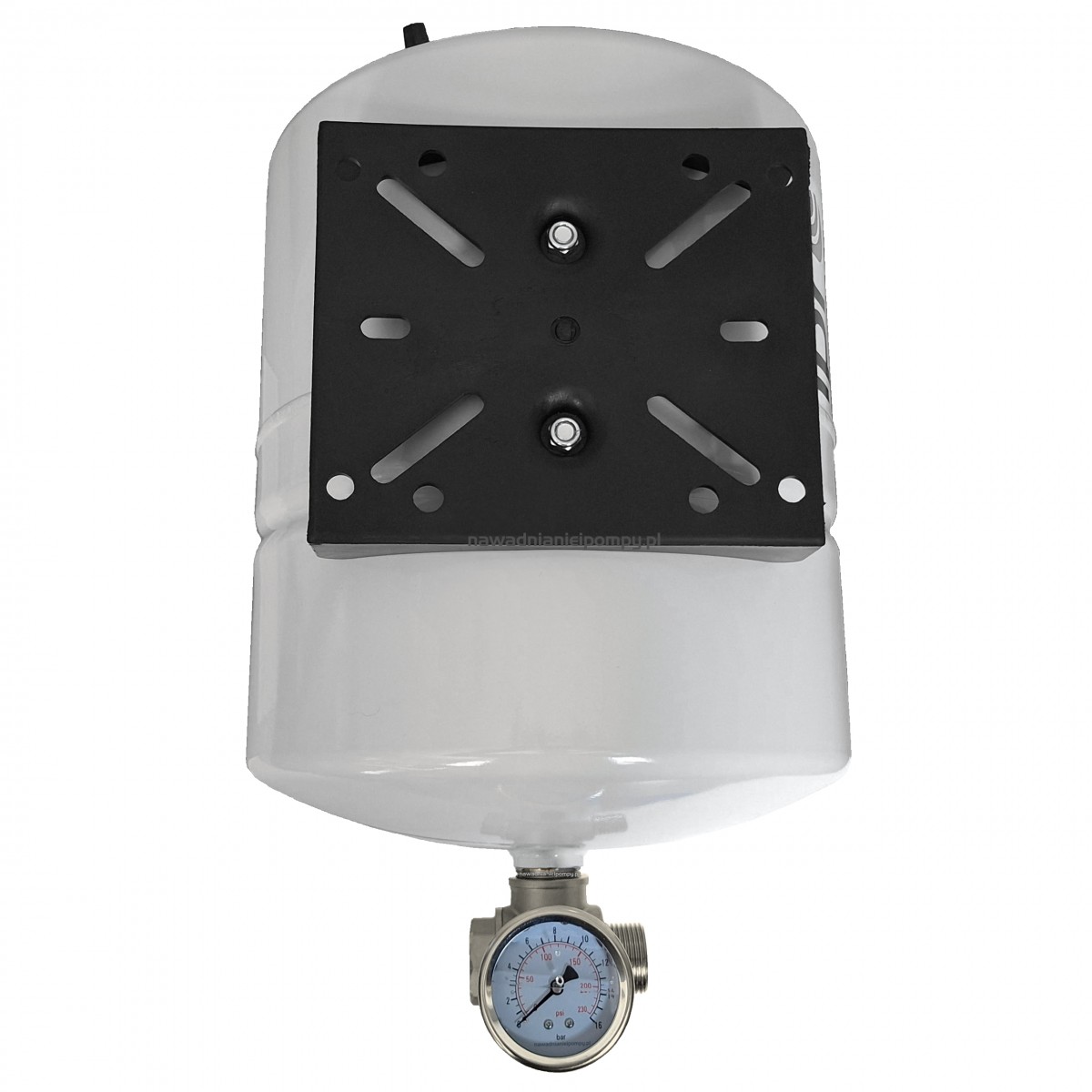 Zbiornik jest skompletowany z w pełni mosiężną armaturą, umożliwiającą montaż rur oraz czujnika ciśnienia. W zestawie znajduje się zawór zwrotny z mosiężnym trzpieniem i grzybem oraz śrubunek oringowy, zapewniający bezproblemowe podłączenie zbiornika.