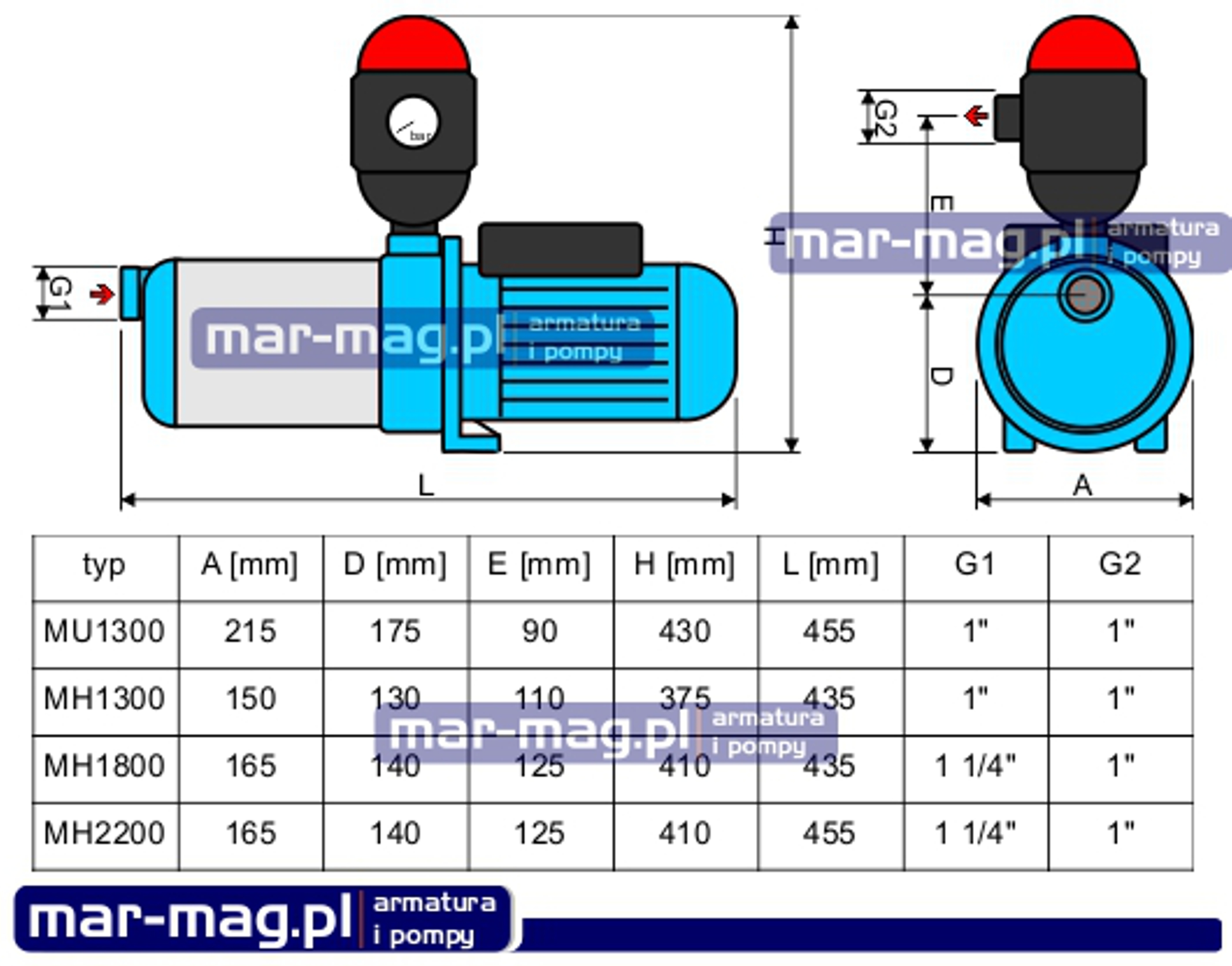 MH1300 to sprawdzona, wielostopniowa konstrukcja przeznaczona do czerpania czystej, zimnej wody ze studni kręgowych lub wierconych.