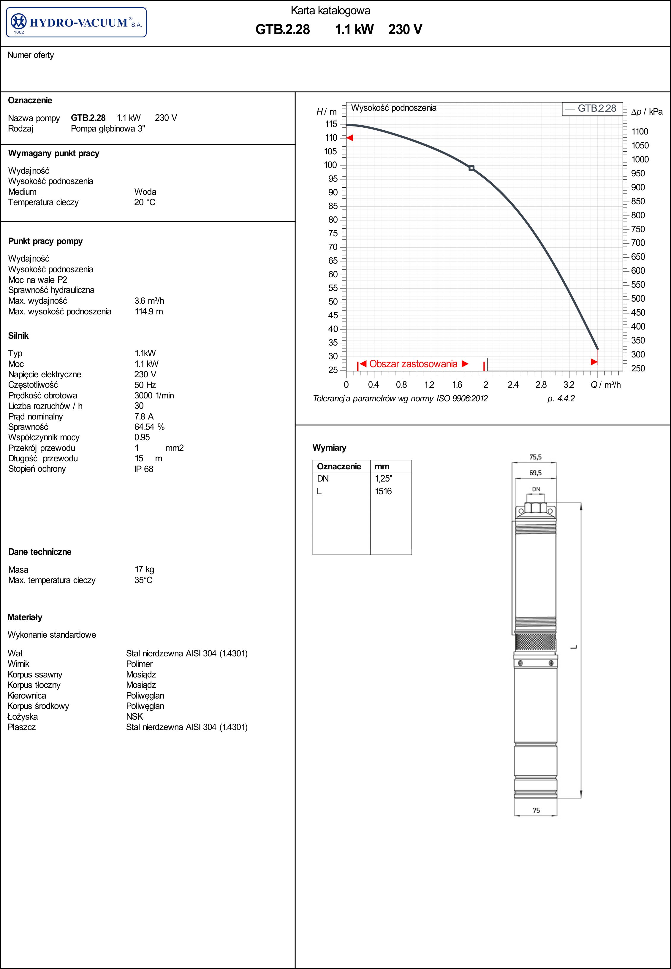 GT to markowa, wielostopniowa konstrukcja opracowana przez Hydro-Vacuum S.A. - polskiego lidera produkcji pomp. Urządzenie cechuje niezawodność, konkurencyjne parametry techniczne i wysoka sprawność energetyczna. Trwałość wynika z wysokiej jakości podzespołów:
