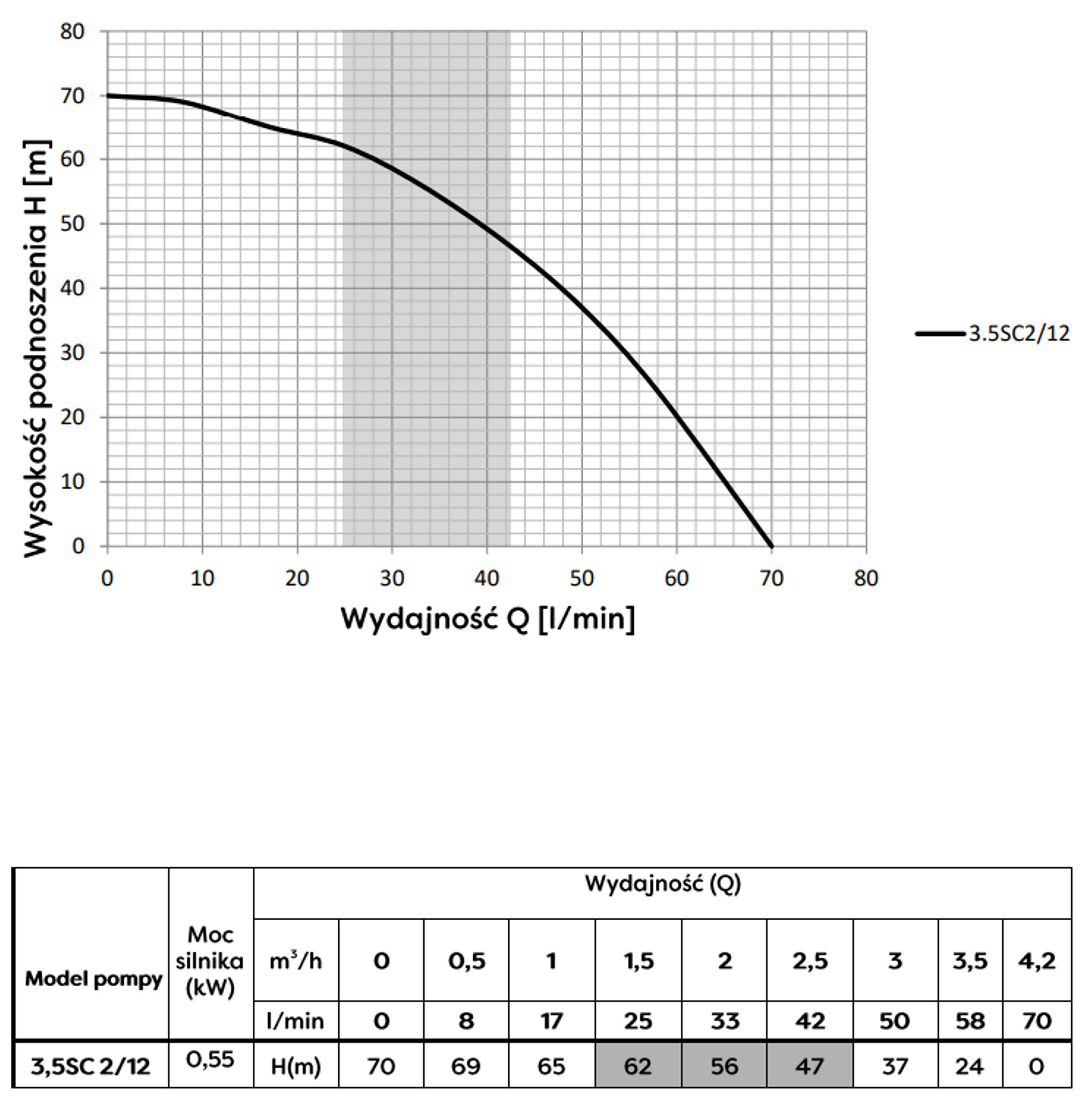 3,5SC to sprawdzona, wielostopniowa konstrukcja przeznaczona do czerpania czystej, zimnej wody ze studni wierconych o średnicy płaszcza 110 lub 125mm.