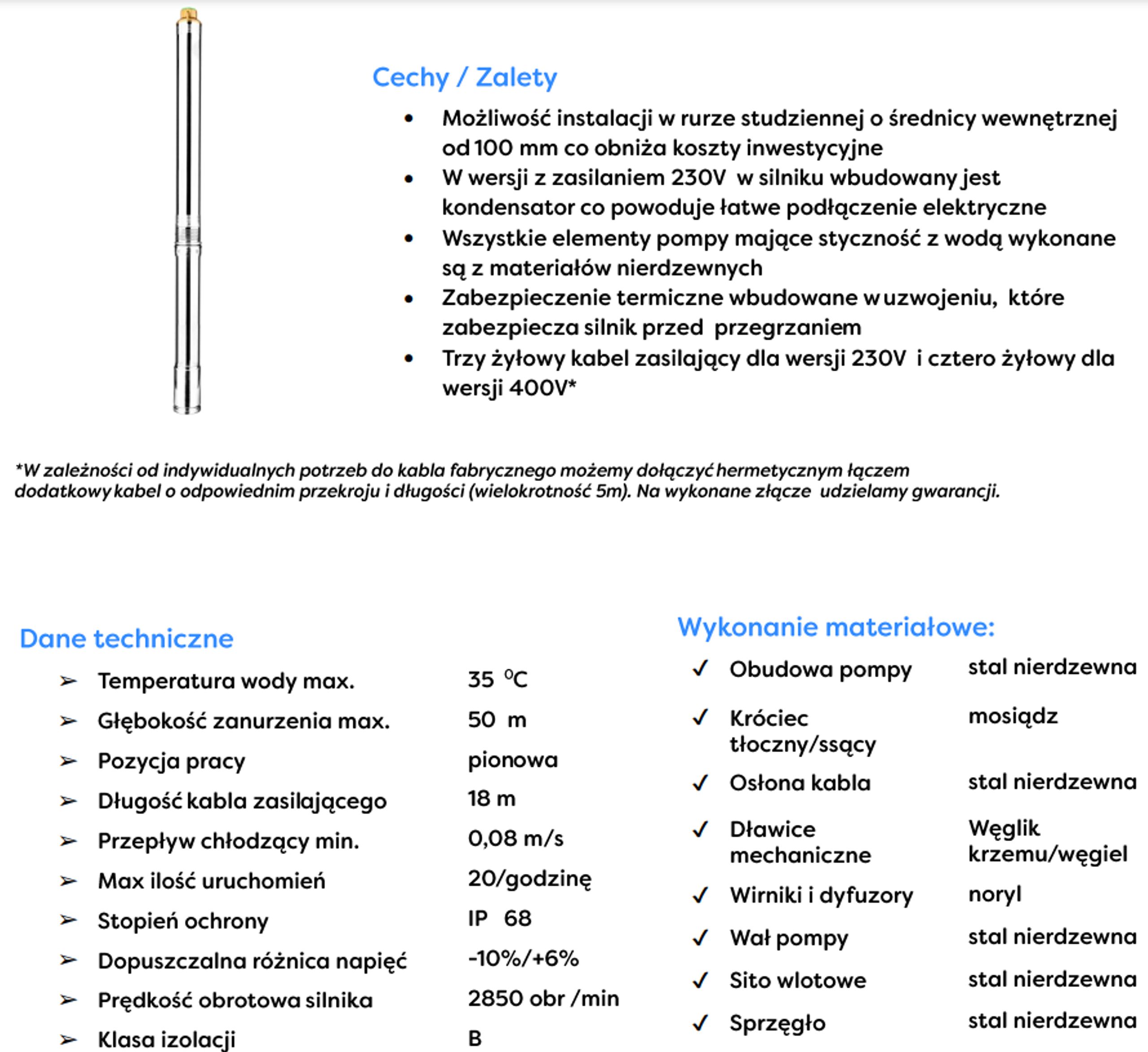 3,5SC to sprawdzona, wielostopniowa konstrukcja przeznaczona do czerpania czystej, zimnej wody ze studni wierconych o średnicy płaszcza 110 lub 125mm.