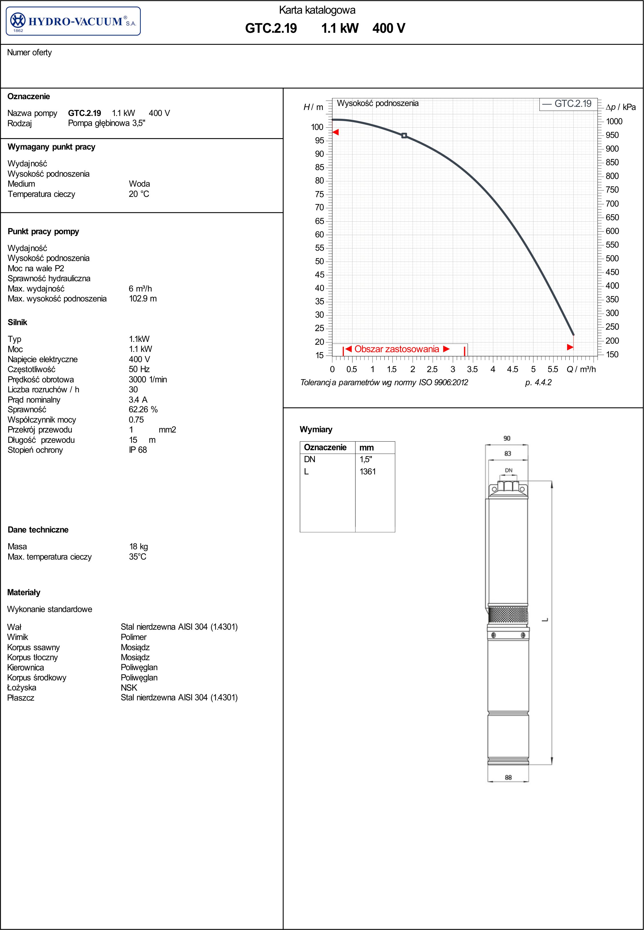 GTC 2.19 1,1kW 400V pompa głębinowa Hydro-Vacuum