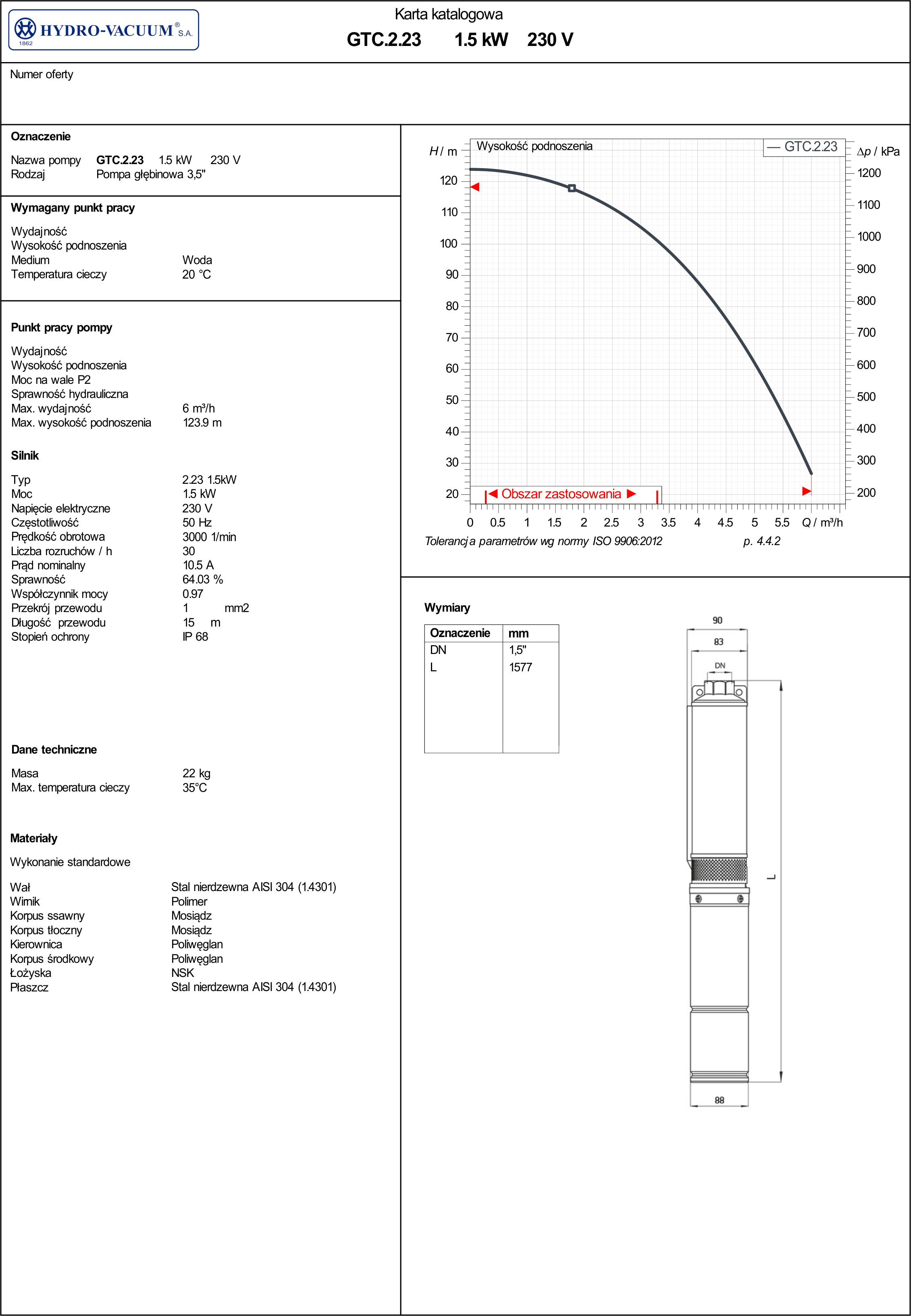 GTC 2.23 1,5kW 230V pompa głębinowa Hydro-Vacuum