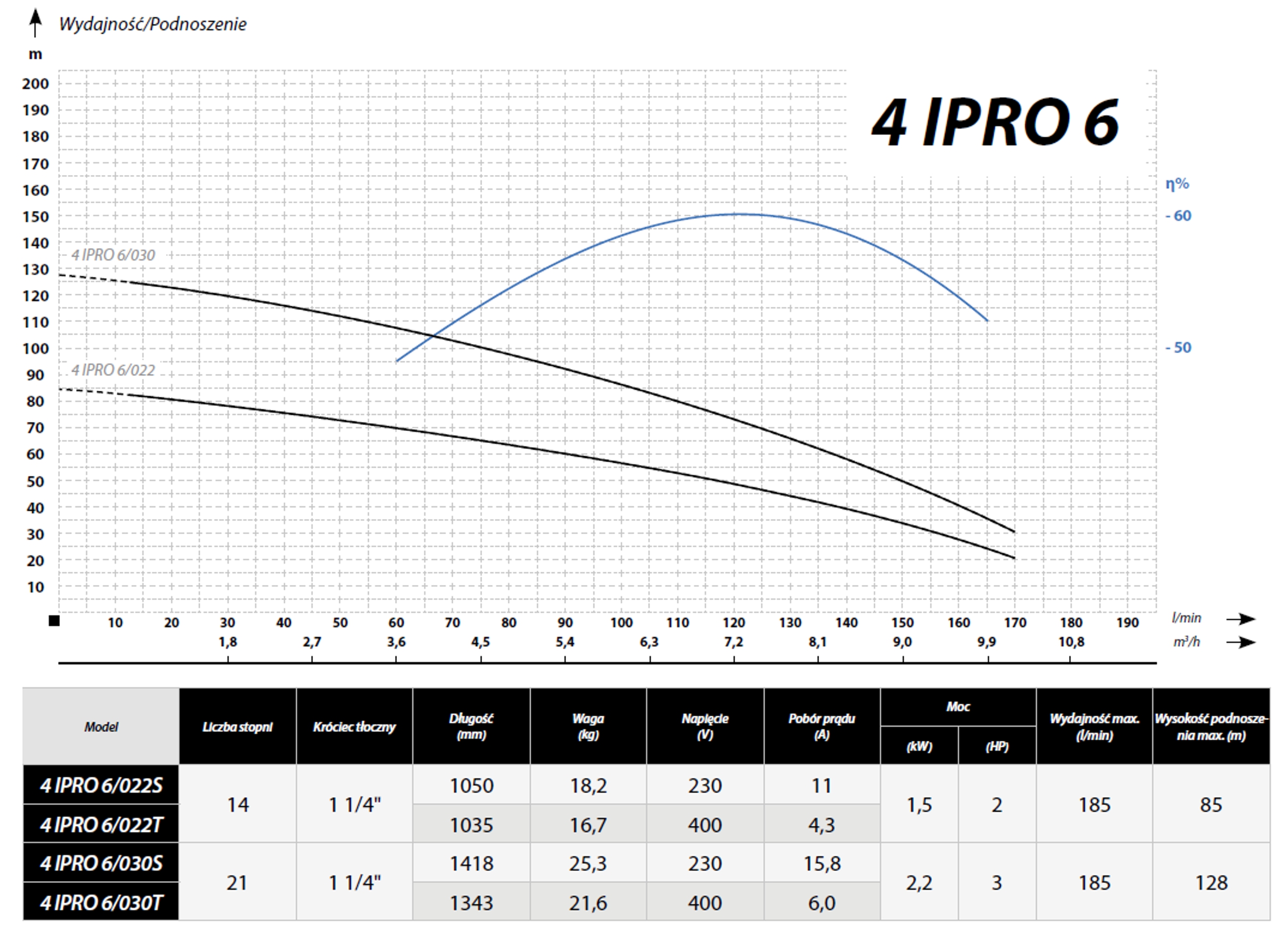 4" 4-015 1,1kW pompa głębinowa IPRO
