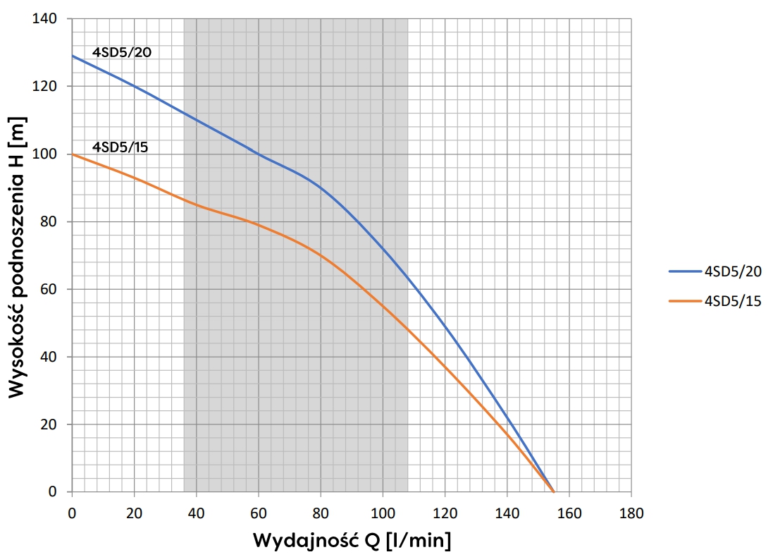4SD to sprawdzona, wielostopniowa konstrukcja przeznaczona do czerpania czystej, zimnej wody ze studni wierconych o średnicy płaszcza 125mm lub większej. Pompy tolerują zawartość piasku do 5% objętości.
