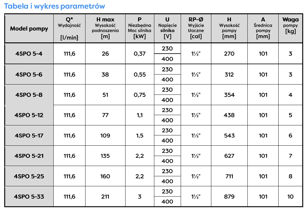 Parametry pomp pochodzą z materiałów opublikowanych przez producenta oraz z wyników pomiarów na stacji prób, którą dysponuje nasz serwis.