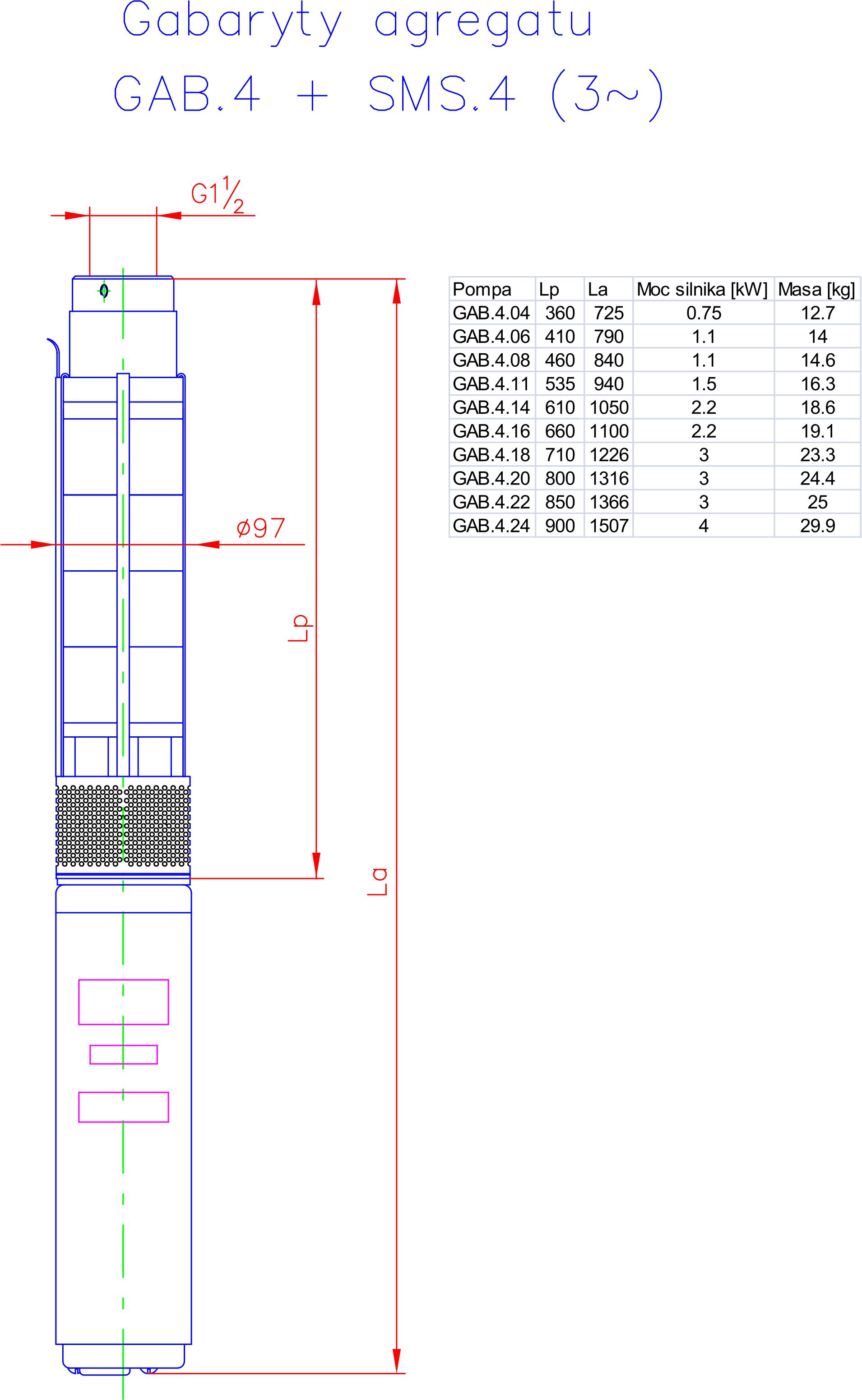 GAB to sprawdzona, wielostopniowa konstrukcja przeznaczona do czerpania czystej, zimnej wody ze studni wierconych o średnicy płaszcza 125mm lub większej