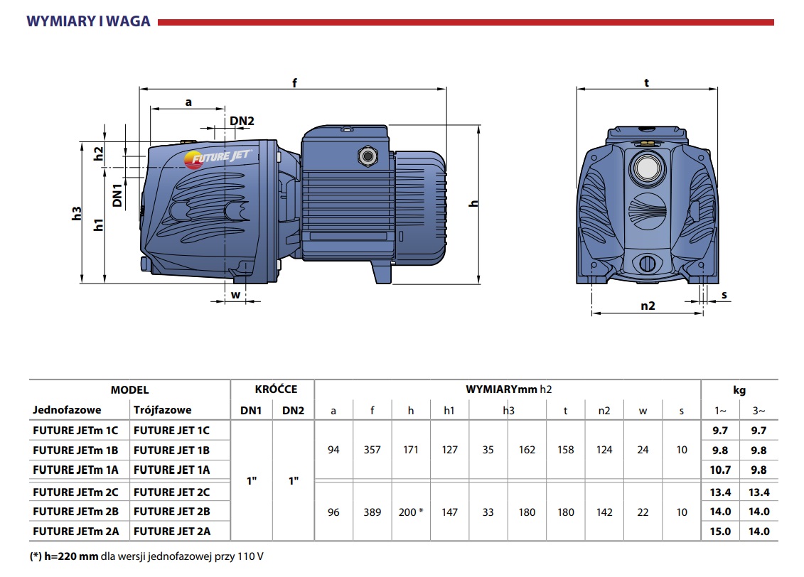Przeznaczona jest do czerpania czystej, zimnej wody ze studni kręgowych lub wierconych. Pedrollo FutureJet 2B posiada silnik o napięciu zasilania 230V lub 400V i mocy 1,1kW. Maksymalna wydajność wynosi 120l/min, a wysokość podnoszenia 54m.