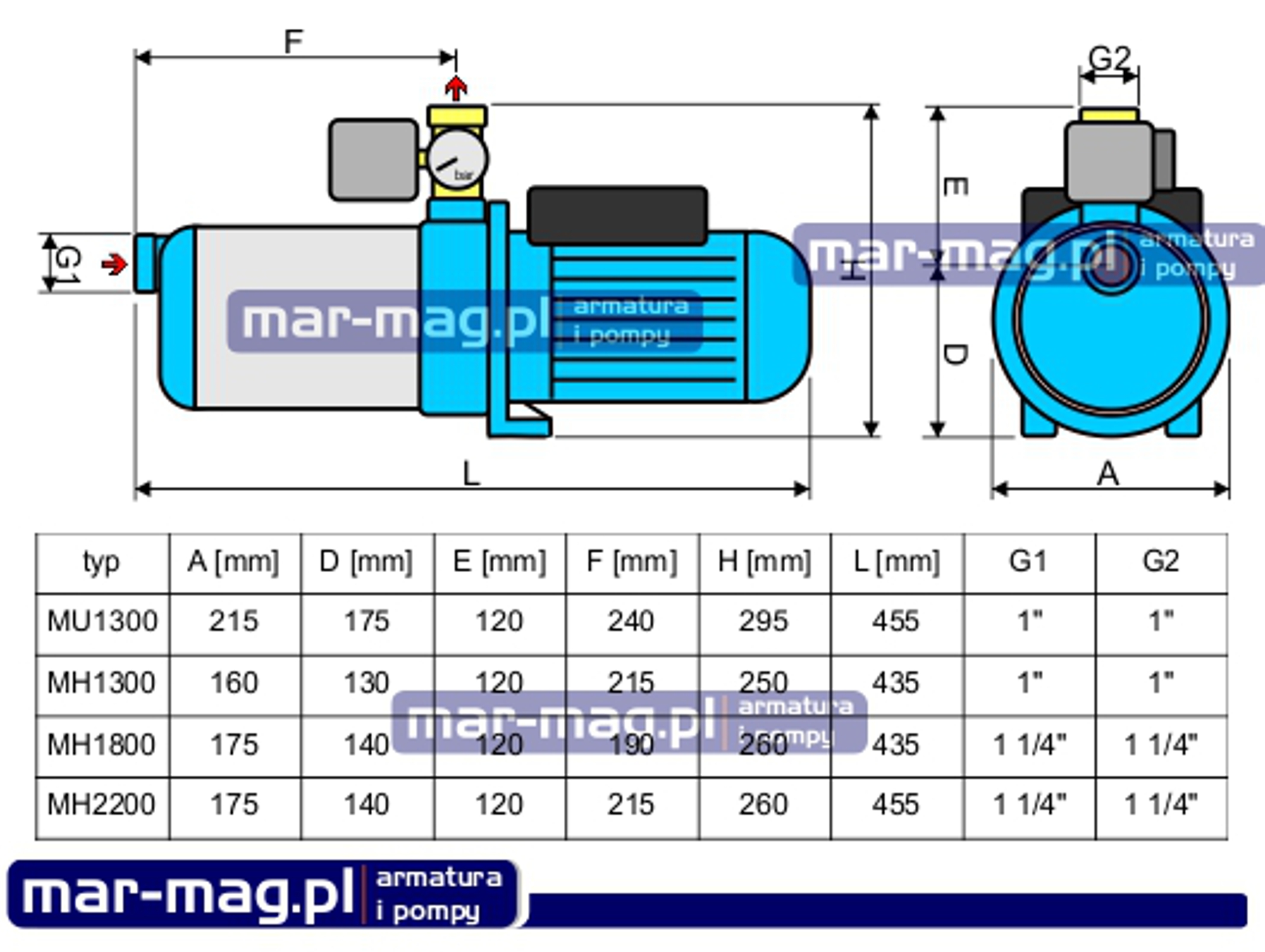 MH2200 to sprawdzona, 5-stopniowa konstrukcja przeznaczona do czerpania czystej, zimnej wody ze studni kręgowych lub wierconych.