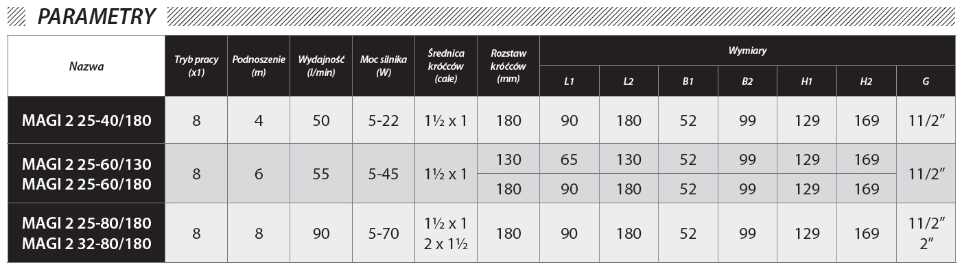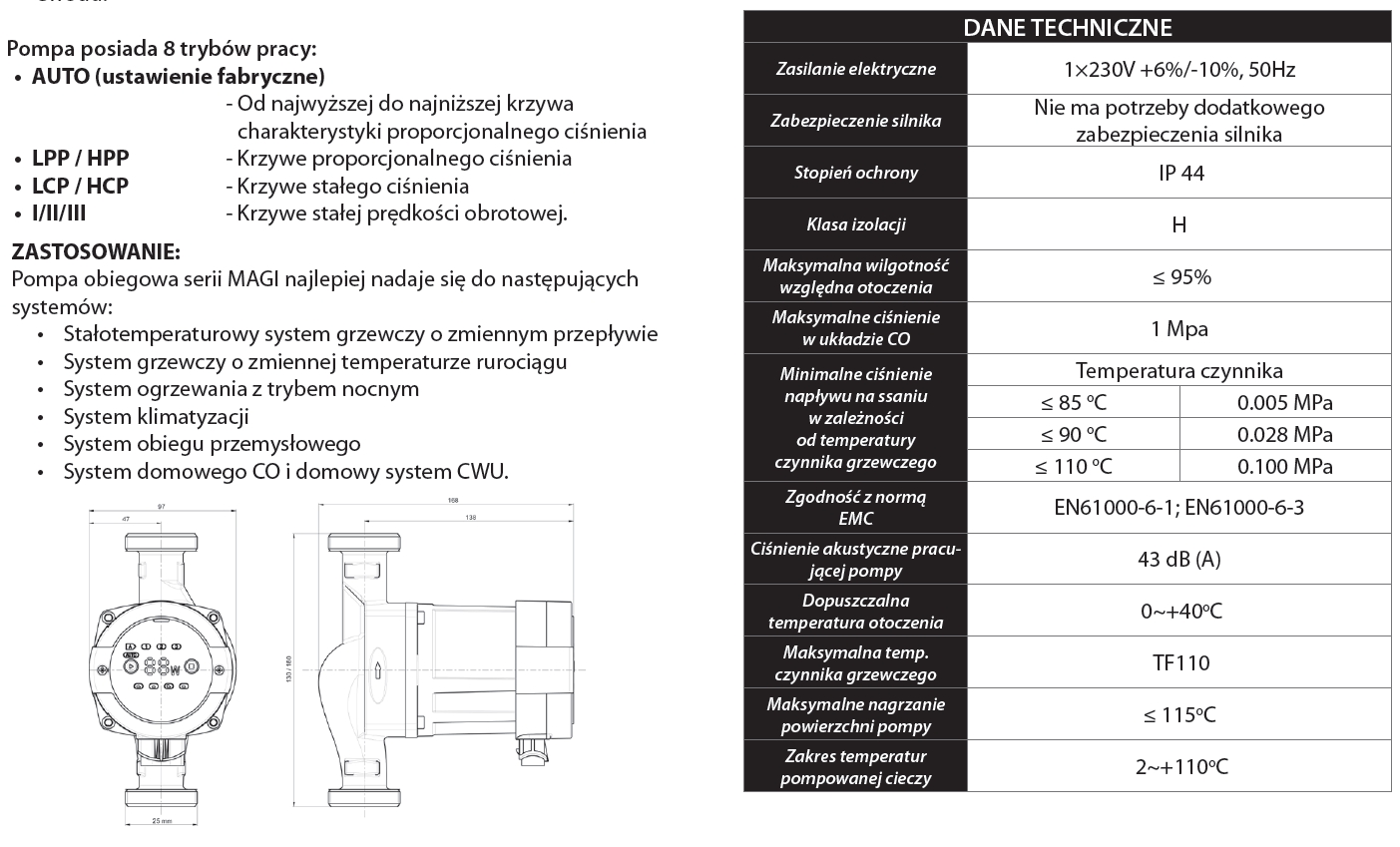 MAGI 2 25-40/180 energooszczędna pompa obiegowa IBO