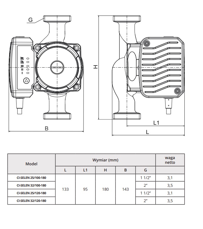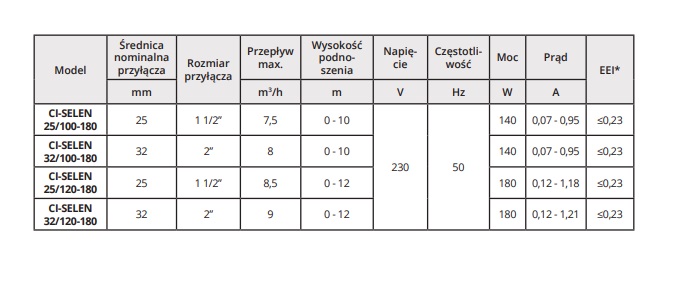 SELENIO 32/120-180 energooszczędna pompa obiegowa CIRCULA