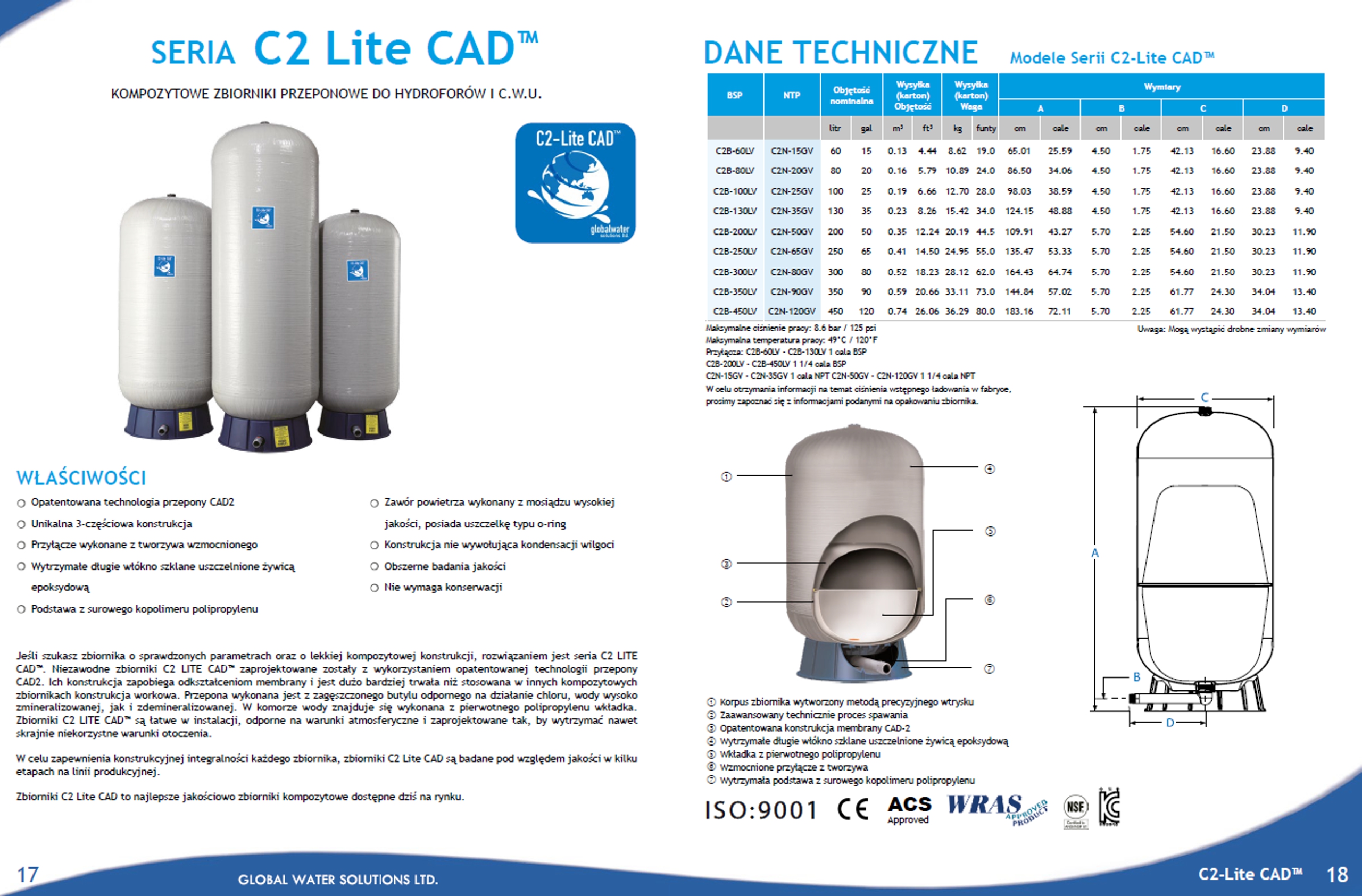 C2-Lite CAD 350L kompozytowy zbiornik hydroforowy GWS | 5 lat gwarancji