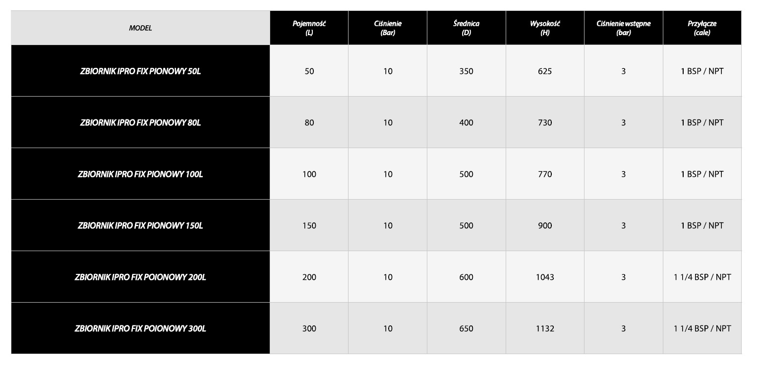 Zbiorniki IPRO FIX wytrzymują ciśnienie do 10bar. W wersji pionowej do wyboru pojemności: 50L, 80L, 100L, 150L oraz 200L.