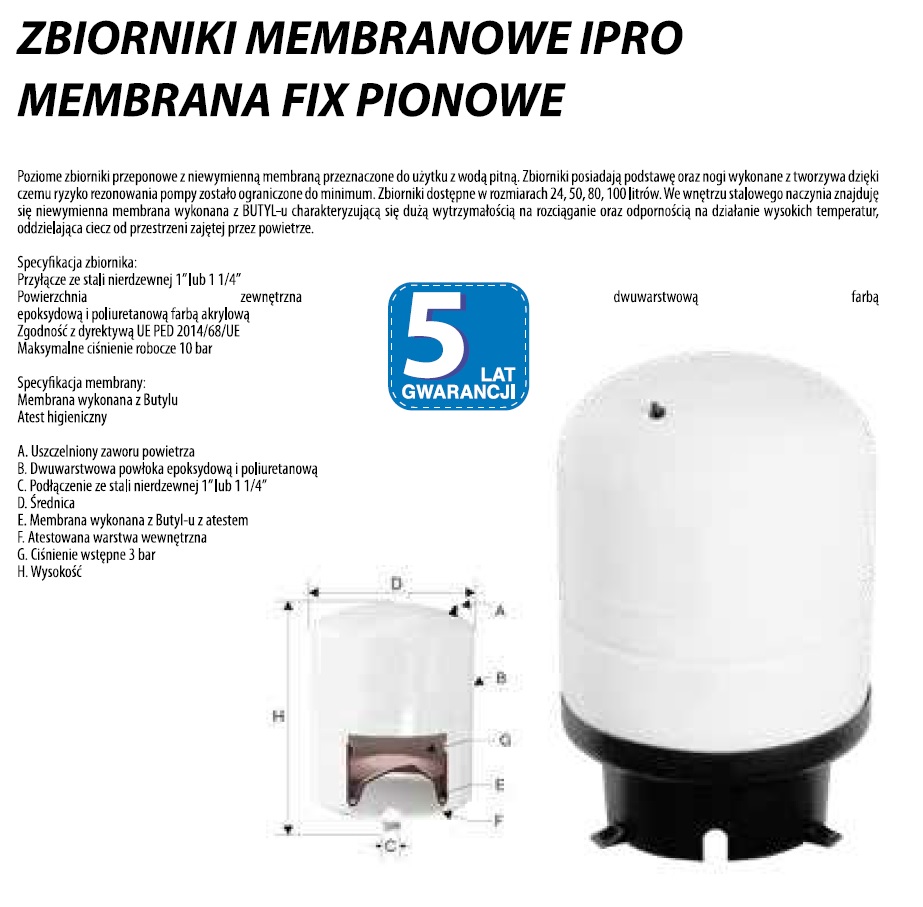 FIX V 80L zbiornik hydroforowy IPRO | 5 lat gwarancji